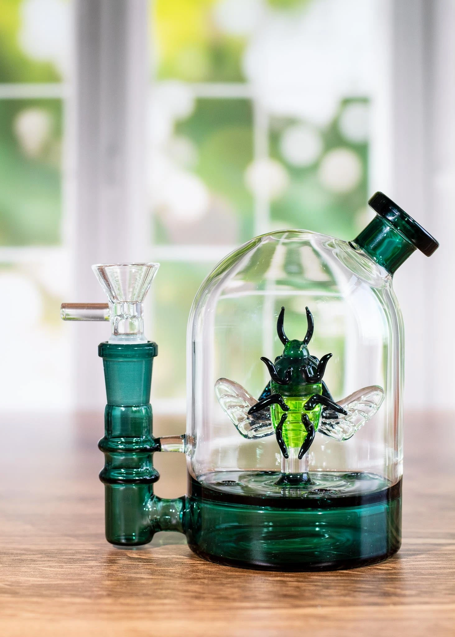 - This cloche style bong features an intricately handcrafted glass beetle inside